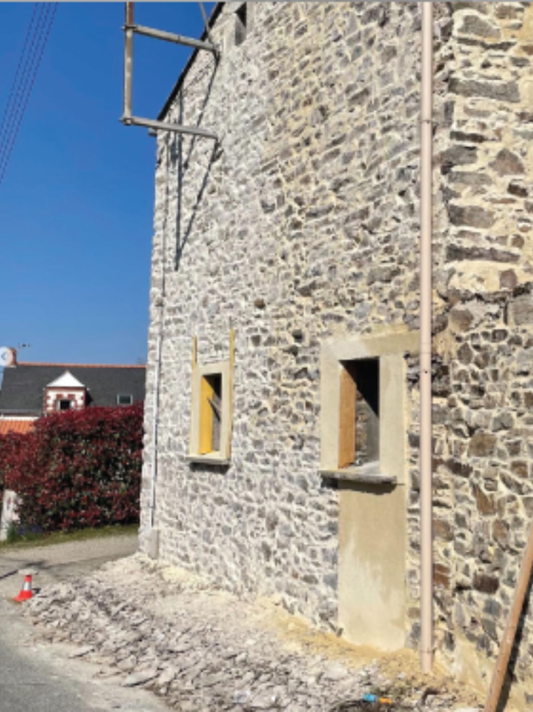Nous avons récemment effectué le ravalement d’une façade en pierre apparente à La Montagne (44). Ce projet visait à redonner une nouvelle vie à une façade historique. Tout d’abord, nous avons réalisé un nettoyage approfondi des pierres. Nous avons éliminé les mousses et les salissures accumulées au fil du temps. Ensuite, un traitement spécifique a été appliqué pour protéger la façade de l’humidité.