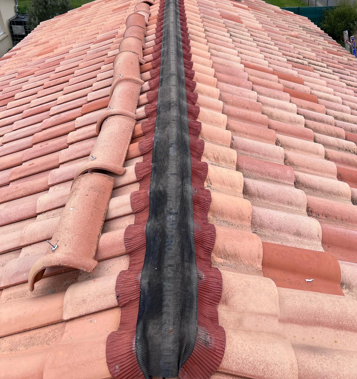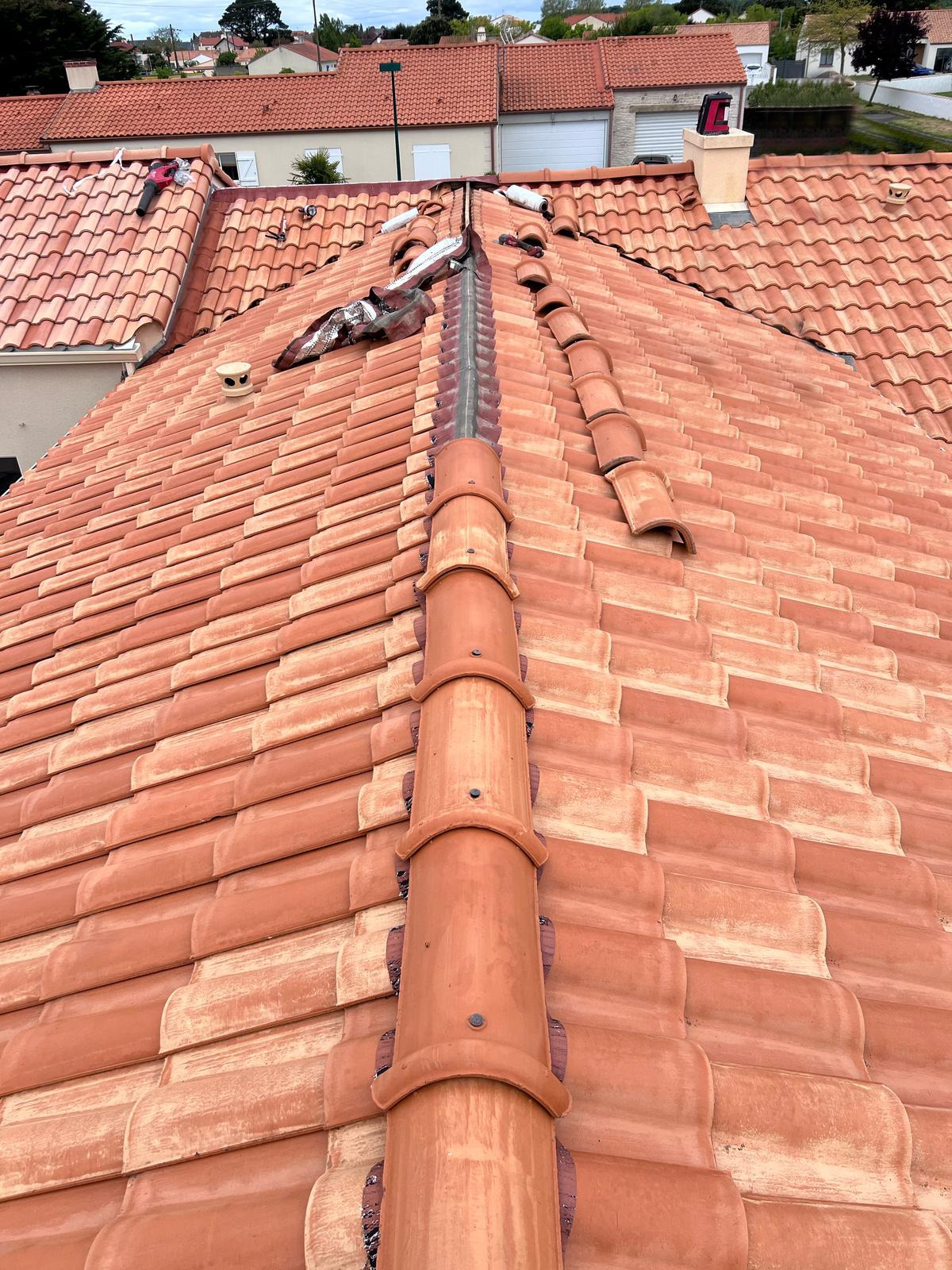Nous avons récemment remplacé le closoir de faîtage sur la toiture d’un de nos clients à Villeneuve-en-Retz. Ce type d’intervention est essentiel pour garantir une bonne étanchéité à l’air et à l’eau, tout en assurant une ventilation efficace, conforme aux normes actuelles. Grâce à ce remplacement, la toiture retrouve toute sa fiabilité et notre client peut désormais profiter d’une maison bien protégée et durable.